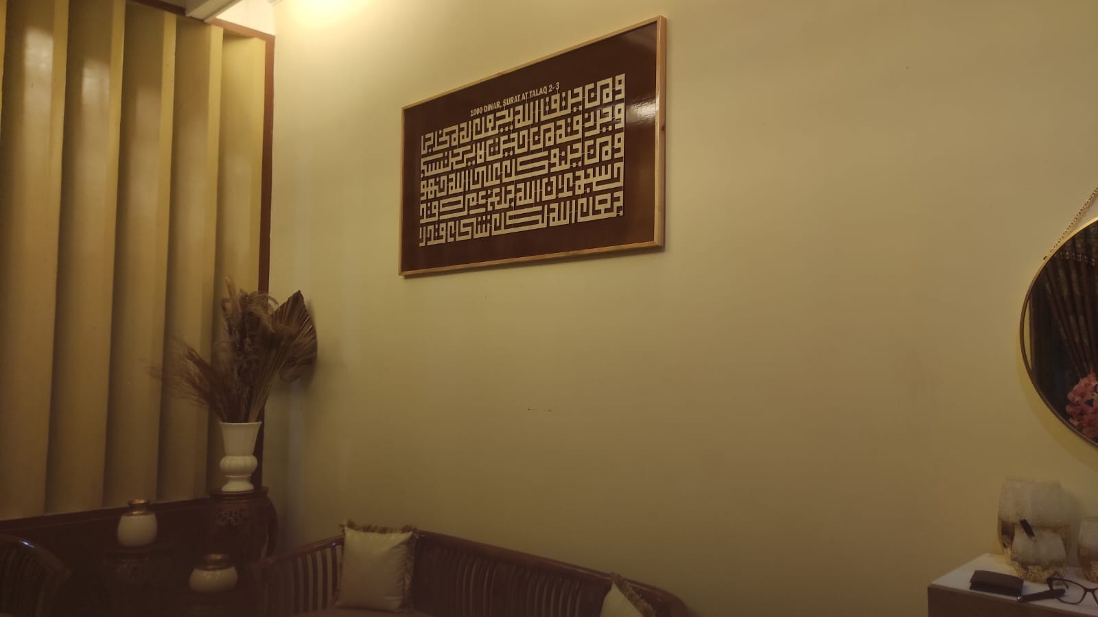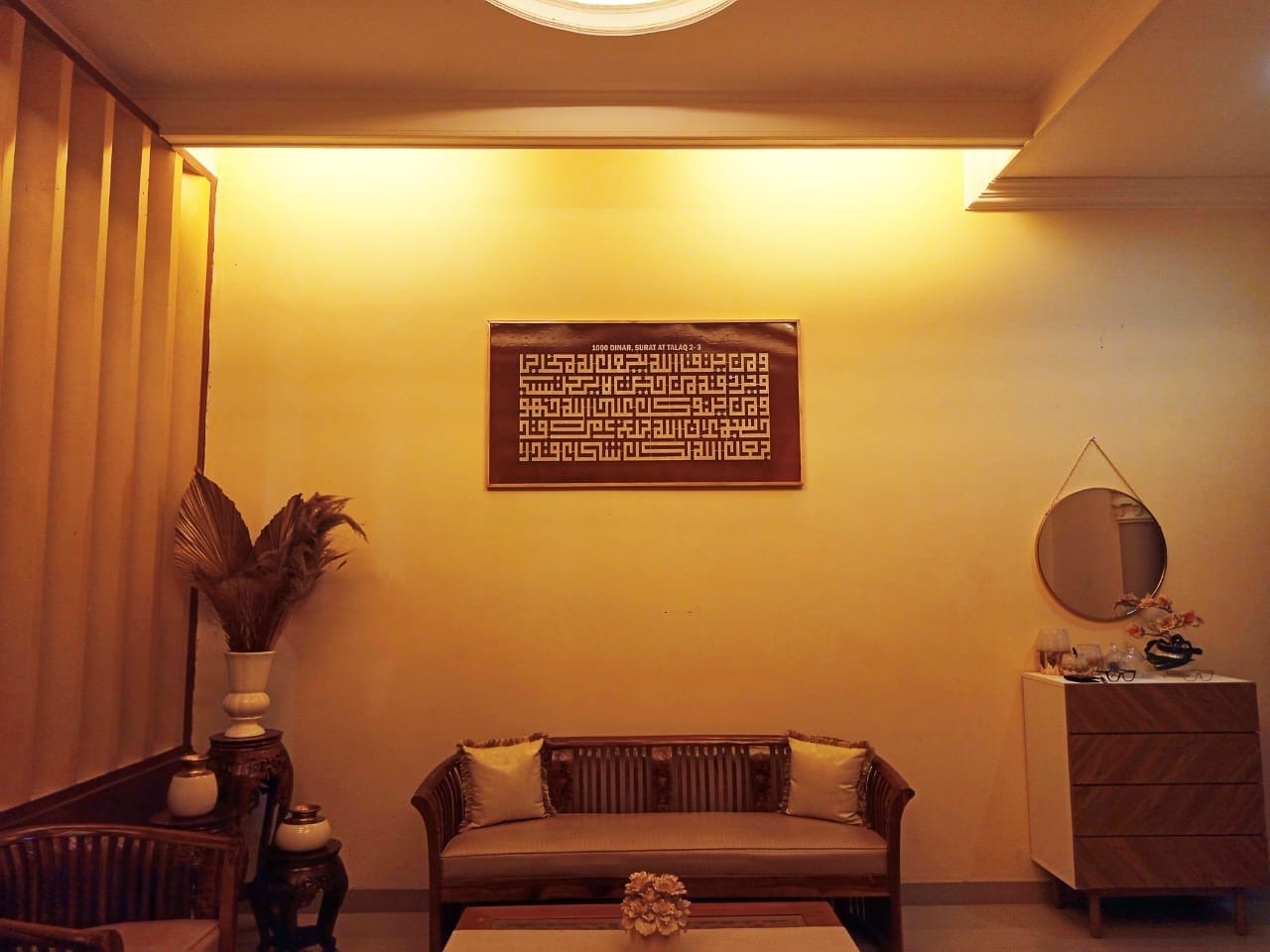 hiasan dinding terbaru dengan desain yang elegan pada bagian tengah menggunakan teknologi laser cut membuat ruangan terlihat semakin mewah dan aesthetic
