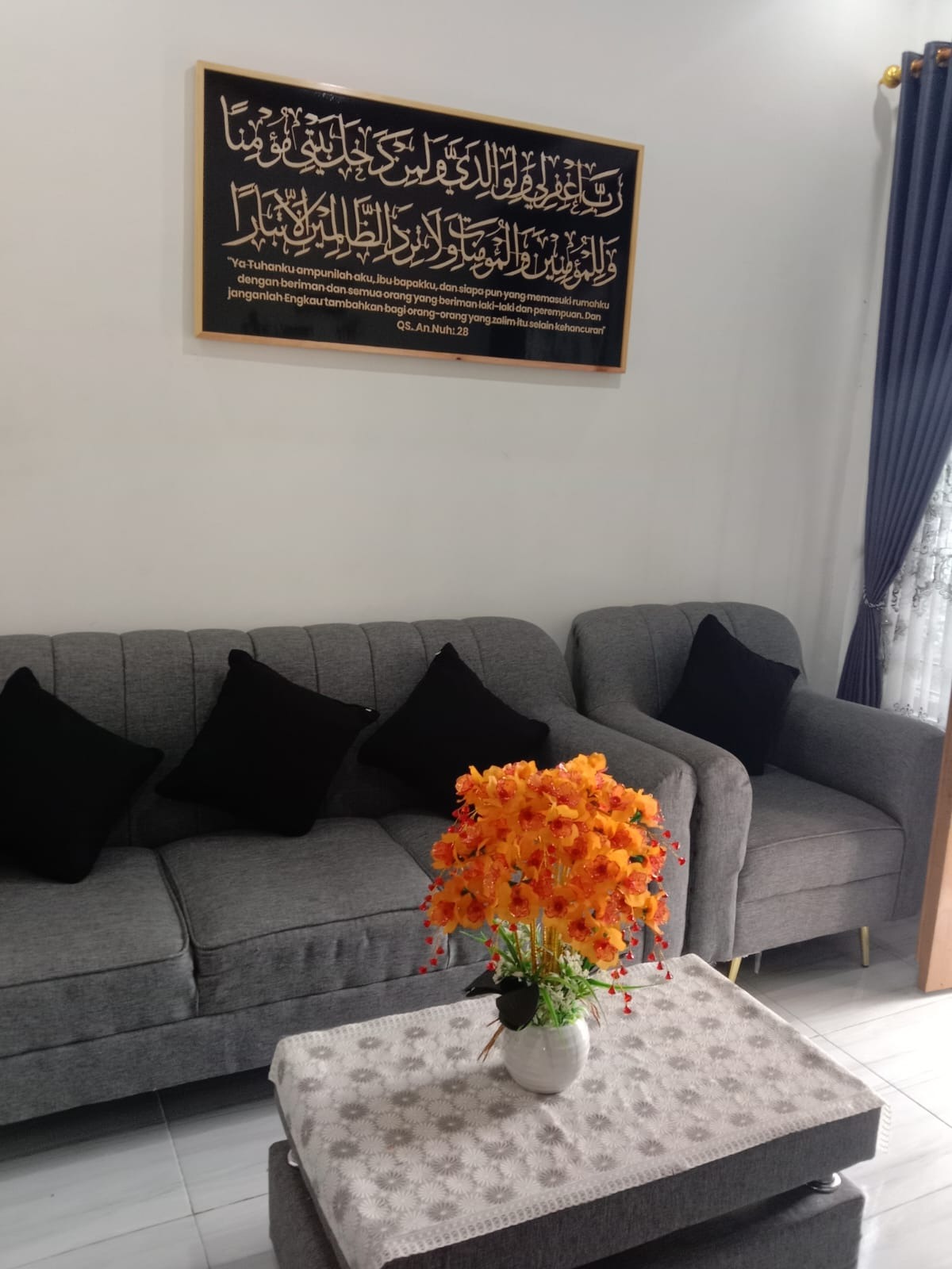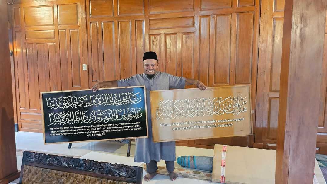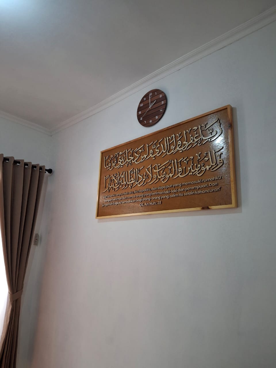 - Bahan frame kayu pinus background dan tulisan palywood premium