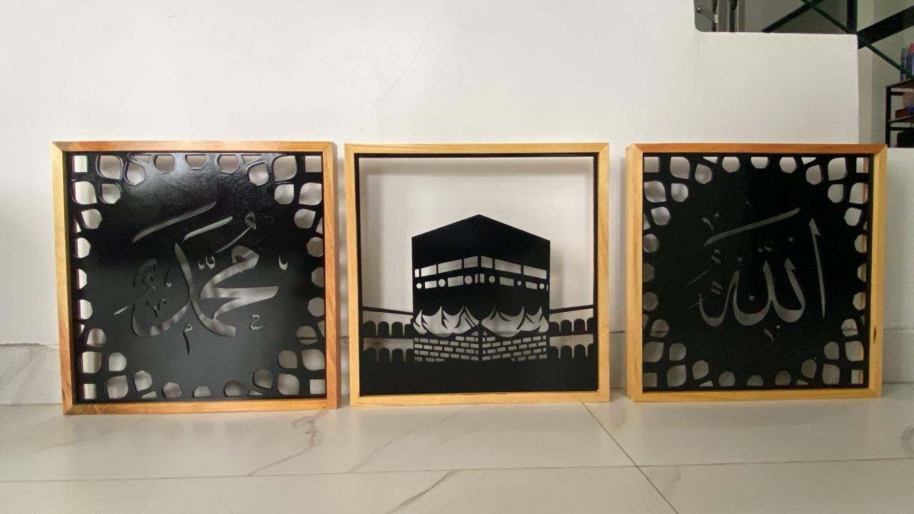 Set Islami Allah muhammad full kayu dapat 3 pcs 41x41 cm